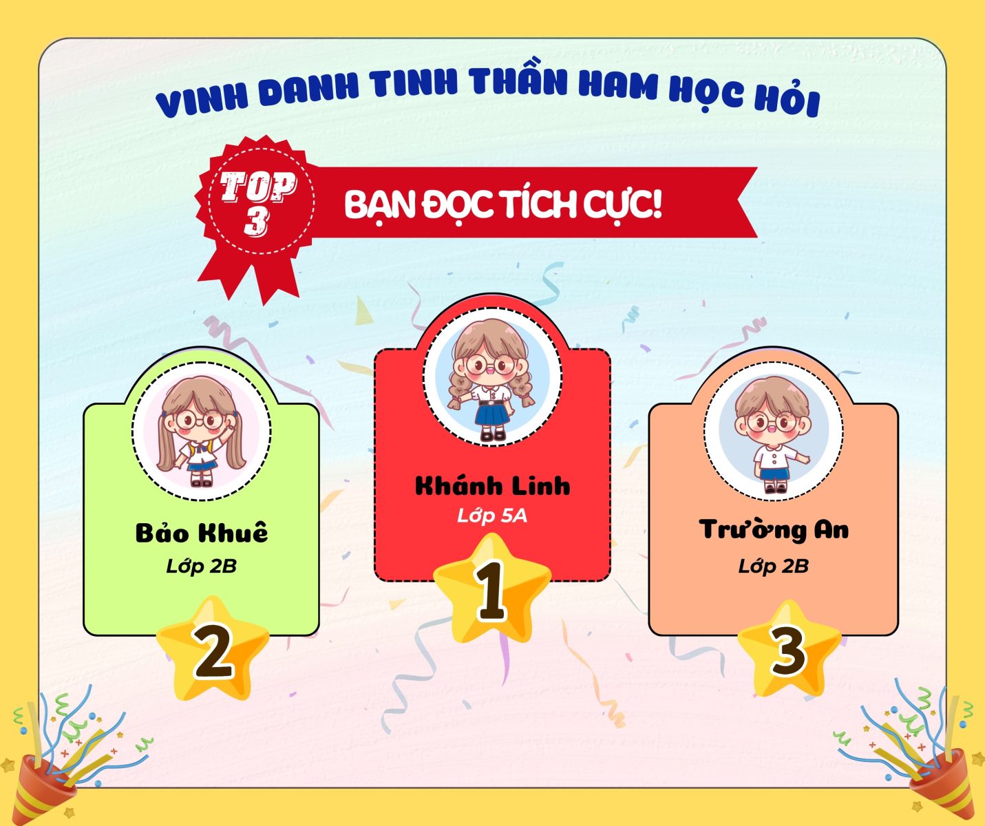 Trong tháng 4 vừa qua, ba bạn học sinh có thành tích nổi bật khi tích cực đọc và học tập qua Thư viện số là: